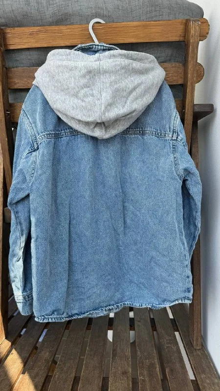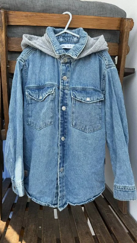 Джинсовая рубашка Zara 134 размер - на клепках с капюшоном, он отстегивается