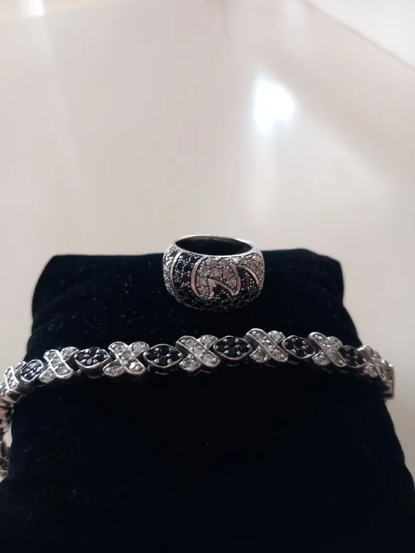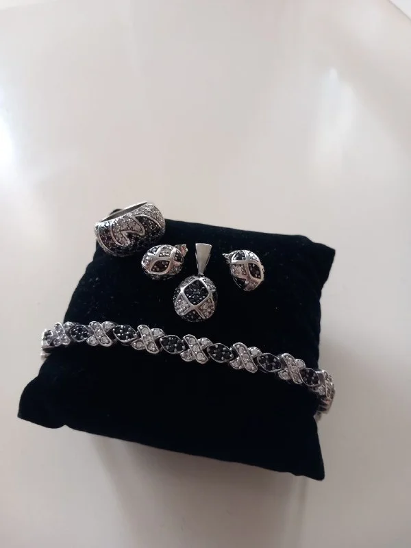 Красивый, серебряный комплект в идеальном состоянии. Камни - чёрный агат и цирконий. Отдам за 160€