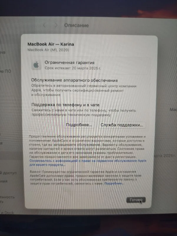 Macbook air M1, 2020