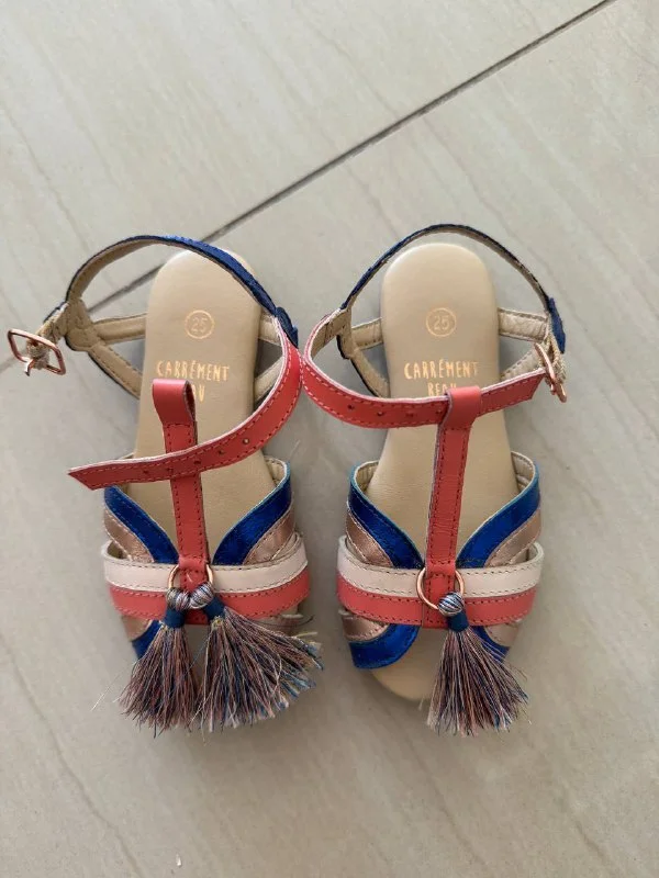 Отдам бесплатно детские сандалики 25 размер (маломерки, на худую ножку), кожа. Бренд Carrément beau. Дочка надела один раз и оторвала кисточку каким-то образом.