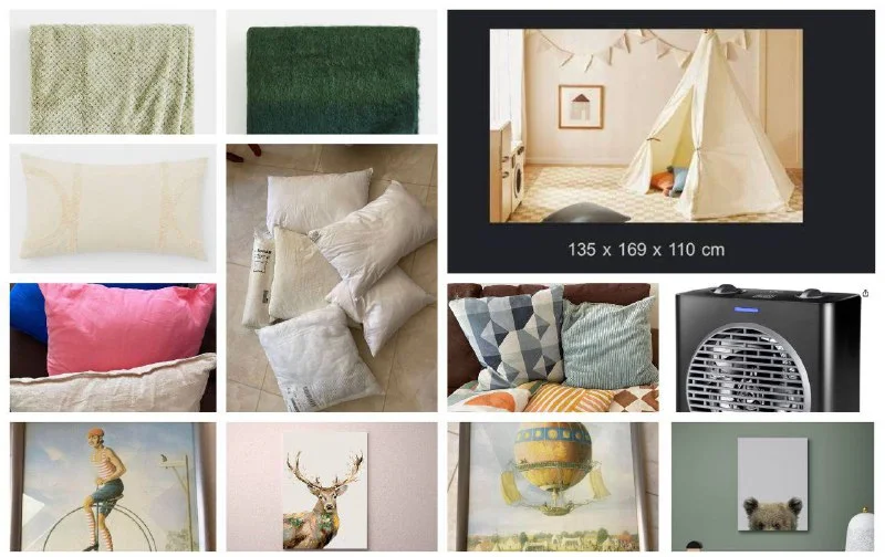 * 3 разноцветные подушки - 5€