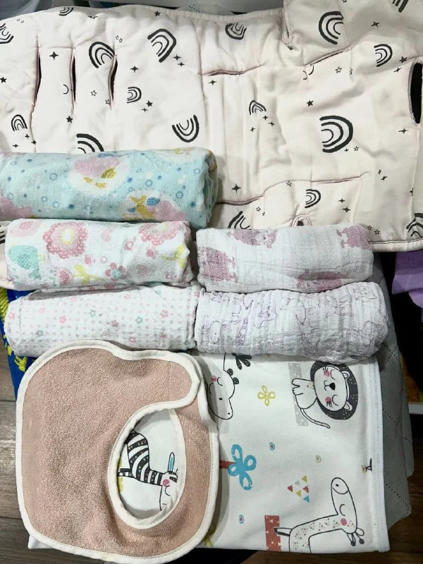 3) набор пеленок, одеяло (муслиновые, хб и теплые)