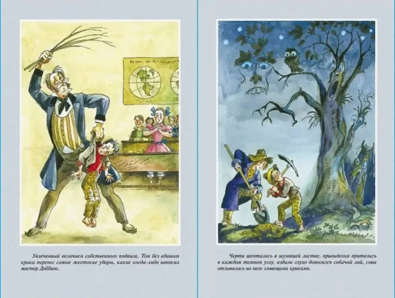 Вышедшая в 1876 году повесть американского писателя Марка Твена во многом автобиографична. Большинство приключений задиристого и находчивого мальчишки из крошечного американского городка на реке Миссисипи происходило на самом деле - с писателем или его школьными товарищами. Увлекательные события и весёлые проделки Тома вызывают у читателей улыбку и сочувствие, а у некоторых из них (самых юных, горячих и мечтательных) - пожалуй, что и жгучую зависть! Ведь какому мальчишке не хочется уплыть на необитаемый остров или отыскать клад с золотыми монетами! Повесть издана в классическом переводе Корнея Ивановича Чуковского.