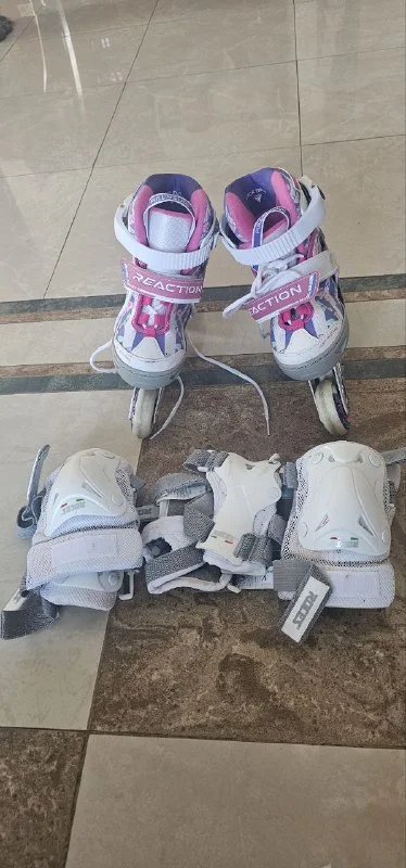 Ролики+защита+шлем. На девочек размер роликов от 25 до 29. Катались 3 раза. 20 евро. Кольцо на тродос .