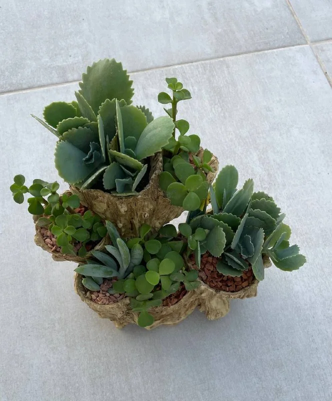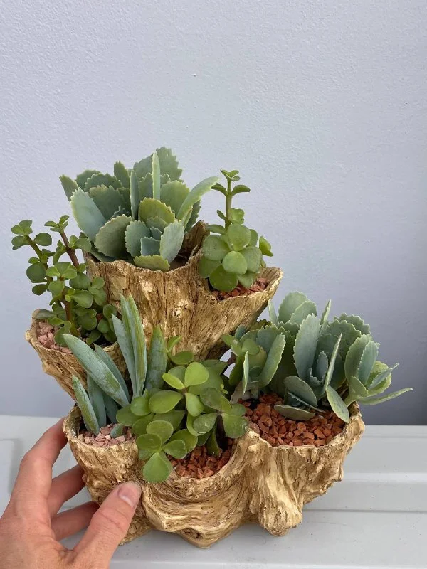25€ Суккулентовый минисад/клумба: мраморное каланхоэ, портулакария африканска, ползучий крестовник (Curio repens). В пластиковом горшке-миниклумбе, имитация под дерево, высота горшка 17,5 см, ширина 19 см. // домашние растения //уличные растения // суккуленты в горшке📍Лимасол