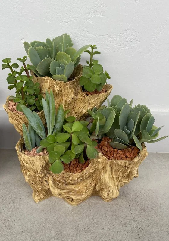 25€ Суккулентовый минисад/клумба: мраморное каланхоэ, портулакария африканска, ползучий крестовник (Curio repens). В пластиковом горшке-миниклумбе, имитация под дерево, высота горшка 17,5 см, ширина 19 см. // домашние растения //уличные растения // суккуленты📍Лимасол, Пиргос, или недалеко от DHL Riga Fereou