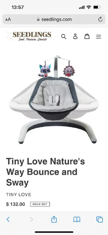Баунсер шезлонг Tiny Love с рождения до 9 месяцев. Удобное и безопасное место для спокойного бодрствования. Легко переносить по дому.