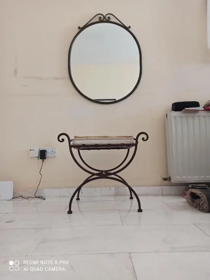 В связи с переездом в другую страну продаю комплект из большого овального зеркала и банкетки утончённой ручной работы . Выполнено из железа и зеркала! - 90€ Лимассол, Гермасогья Тел:99549975