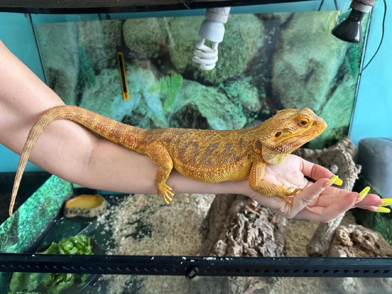 Был посажен на руку взрослого человека для понимания размеров.