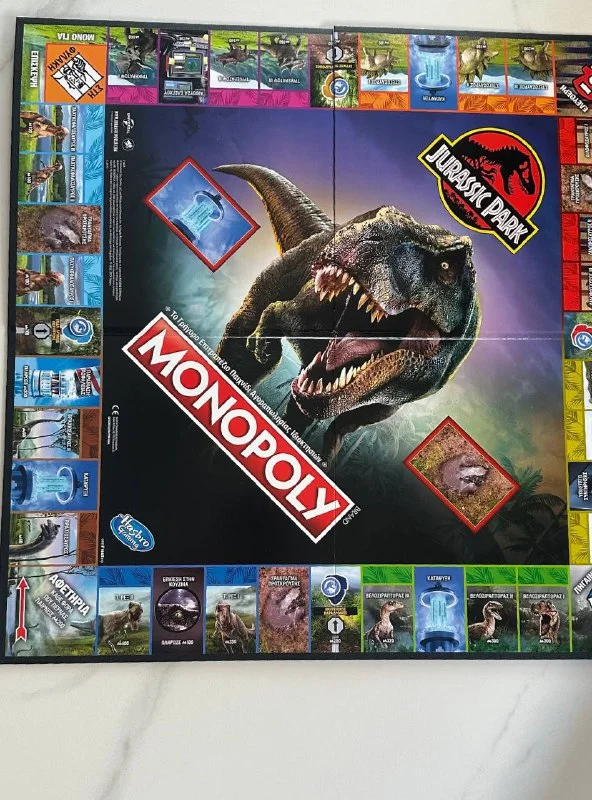 Монополия «Парк Юрского периода» на греческом языке.