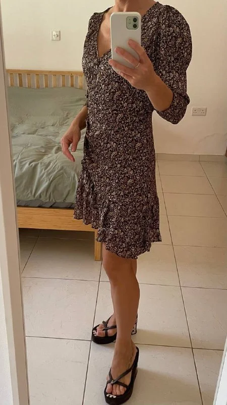 4€ Легкое шелковистое платье Zara, полиэстр, мягкий материал, узор - мелкий цветочек, с воланами, на замке сбоку, размер M, длина 87 см, длина от талии 50 см, окружность талии 70 см, рукав 62 см, от подмышки до подмышки 45 см📍Лимасол, возможно недалеко от Columbia Pier/Columbia Beach/Amara/Miramare Hotel/Makariu Roundabout