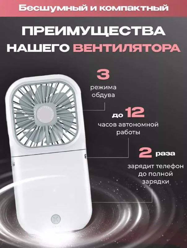 Вентилятор ручной, три режима, не шумный, новый в упаковке , можно на подарок. Можно использовать как зарядное устройство телефона.