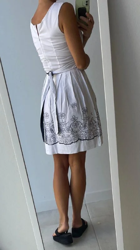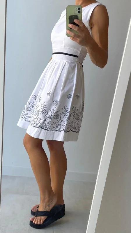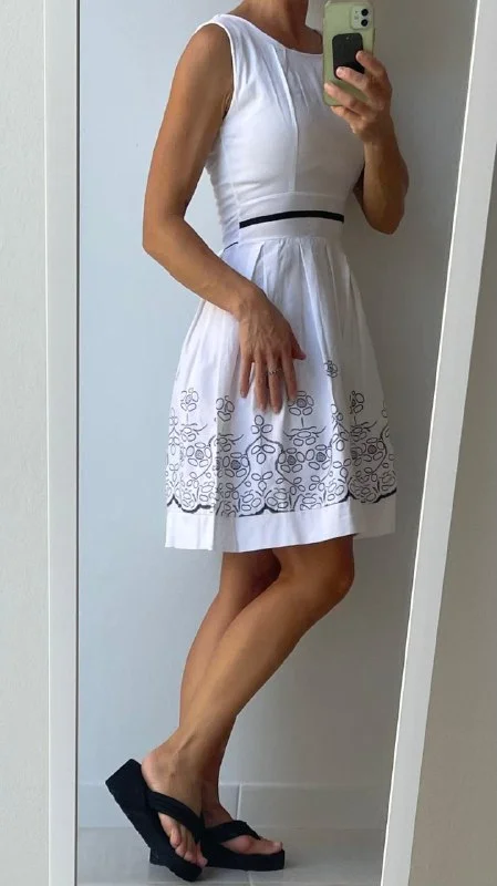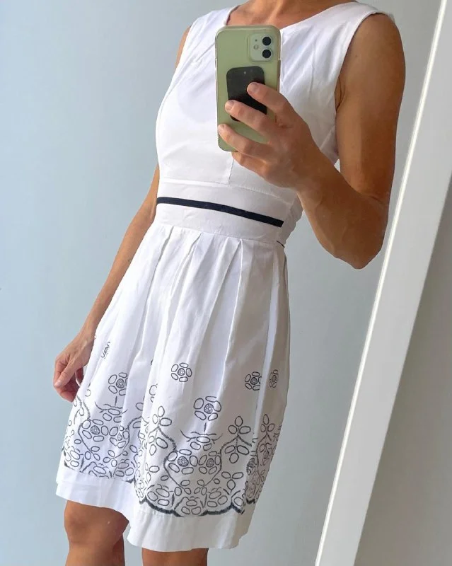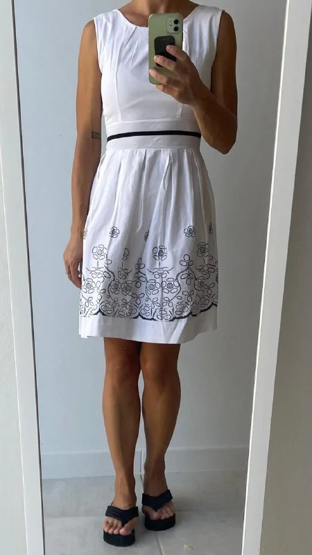 4€ Белое хлопковое платье с синим узором, материал тянется минимально, длина 84 см, длина от талии 50 см, окружность талии 62 см, от подмышки до подмышки 38 см, размер S. Лимасол, возможно недалеко от Columbia Pier/Columbia Beach/Amara/Miramare Hotel/Makariu Roundabout