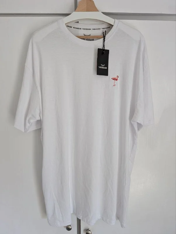 - Футболка Threadbare Tall белая с вышитым фламинго, ОЧЕНЬ длинная новая с биркой - 15 Евро