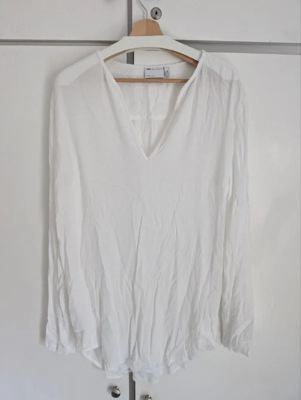- Рубашка без пуговиц с вырезом ASOS белая - L tall, жатая вискоза - б/у - 7 Евро