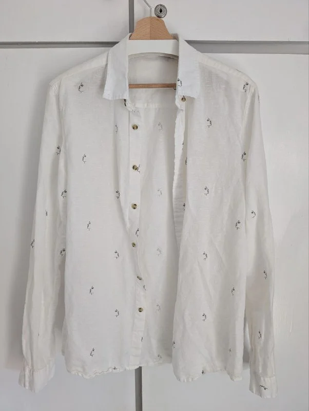 - Рубашка ASOS белая с принтами лиц, L tall, 60% лен, 40% хлопок - немного б/у - 7 Евро