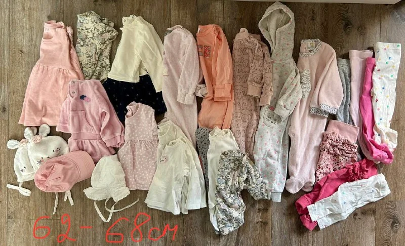Вещи на рост 62-68 см (подходят до 72).- 25€.
