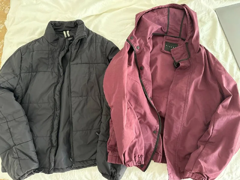 Отдам бесплатно две мужские куртки, черная Hackett, бордовая Sisley,