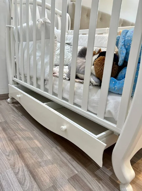 Высота бортика регулируется, на колесиках, есть дополнительный ящичек внизу👌