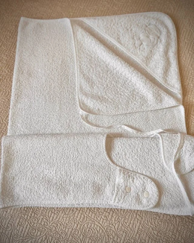 Большое банное полотенце для малыша с завязками и капюшоном