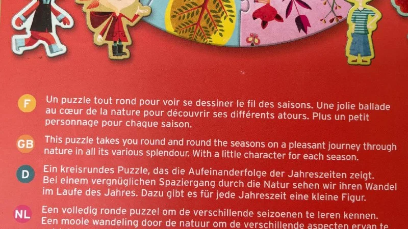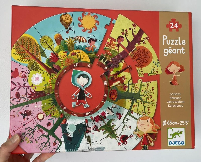 8€ Крупный паззл французского бренда Djeco "Времена года", возраст 3+ , 24 детальки, диаметр паззла в собранном виде 65 см, 1 игрового персонажа не хватает (персонажи немного "поюзаные", внутренняя часть крышки разрисована карандашами, в остальном в хорошем состоянии) Лимасол, возможно, по договоренности, недалеко от Columbia Pier/ Columbia Beach & Lidl / Amara Hotel /Miramare Hotel & Icon /Makariou Roundabout / Jumbo Linopetra / AlphaMega Linopetra / La Isla