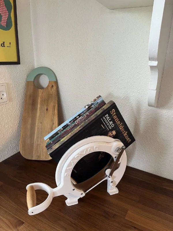 - Функциональность: Полностью рабочая, идеально подходит для нарезки хлеба и отлично смотрится на кухне, так же может служить как предмет интерьера например полка для книг.