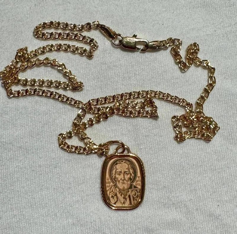 Новая позолоченная цепочка с кулоном Святого Николая(цепь толстая и не тяжелая,не темнеет)