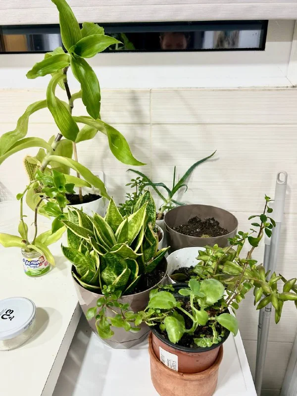 Растения, цветы домашние вместе с новыми горшками, Керамическими и пластиковыми разного размера , а также деревянные декоративные элементы, есть подвесной - на фото не всё