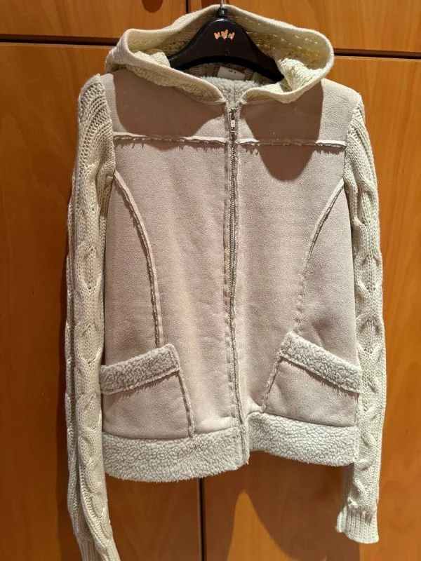 Белая пуховая куртка с капюшоном на размер S 30€
