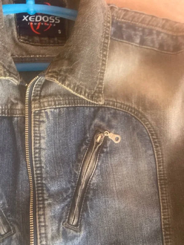 Мужской джинсовый пиджак Xedos сочетание черного и синего ,размер S -подойдет мальчику-подростку