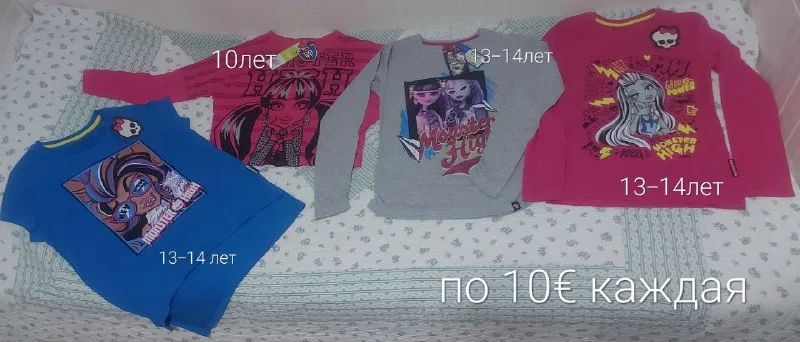 Продам детскую одежду на девочку.Все в хорошем состоянии.Водолазки Monster Hight новые с бирками.Цена и размеры на фото.Лимасол