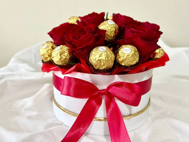 Коробочка с розами и Ferrero Rosher. Была сделана для фотосессии. Розы свежие и красивые. 45 евро, Лимассол, Неаполис. Если недалеко, могу привезти.