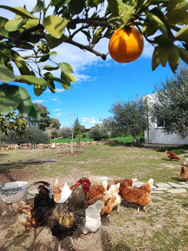 Свежие куриные яйца и фрукты со своего сада. Никаких удобрений и химикатов. Всё экологически чистое. 5€ пакет фруктов и 5€ 12 яиц.