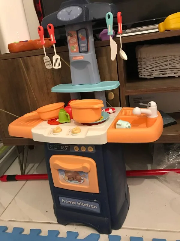 детская кухня с посудой. Издаёт звуки воды и плиты