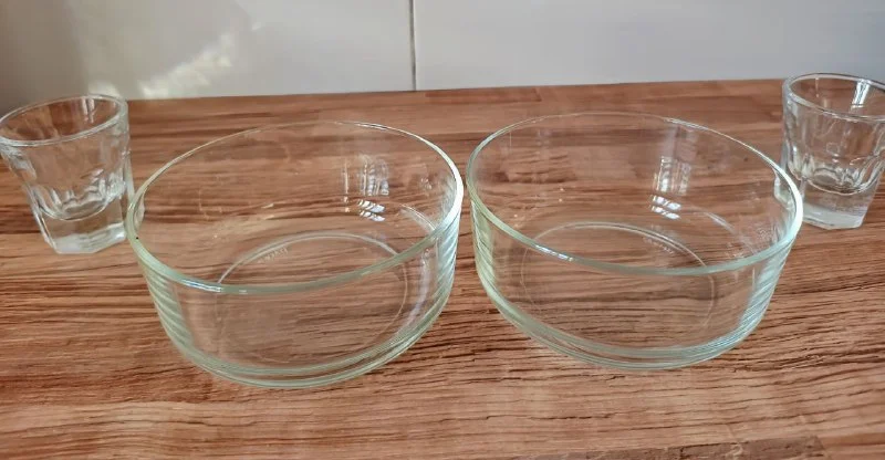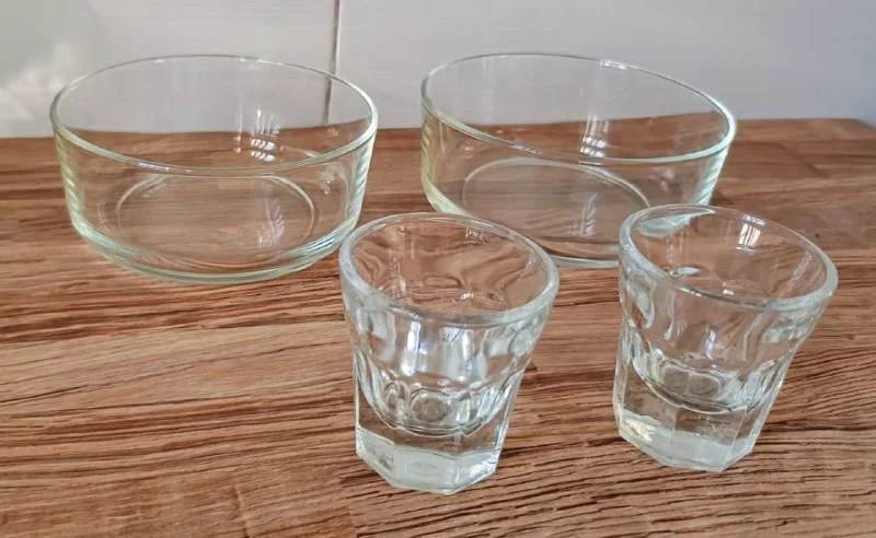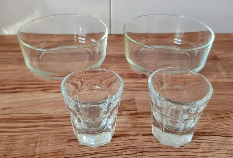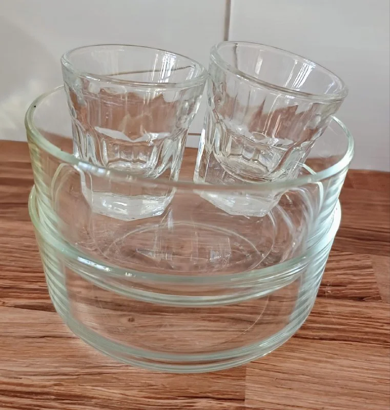 Две рюмки и две пиалы под оливки и другой закусон. За 2 пиалы 7 евро, рюмки -дарю. Лимассол.