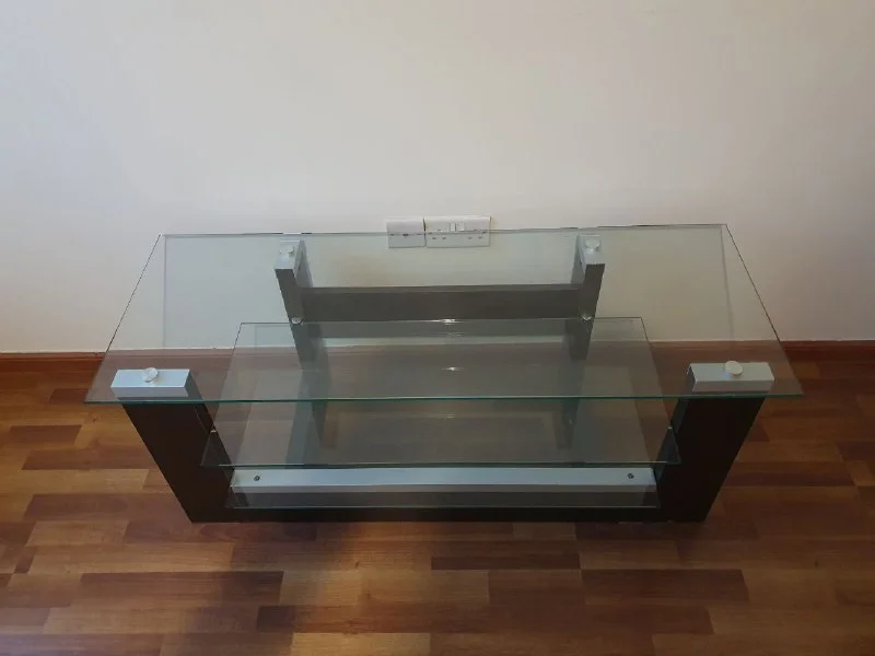 Тумба для телевизора стеклянная трёхуровневая