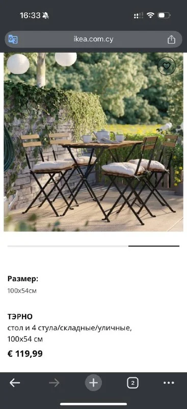 Уличная мебель в отличном состоянии, стол и 4 стула ikea