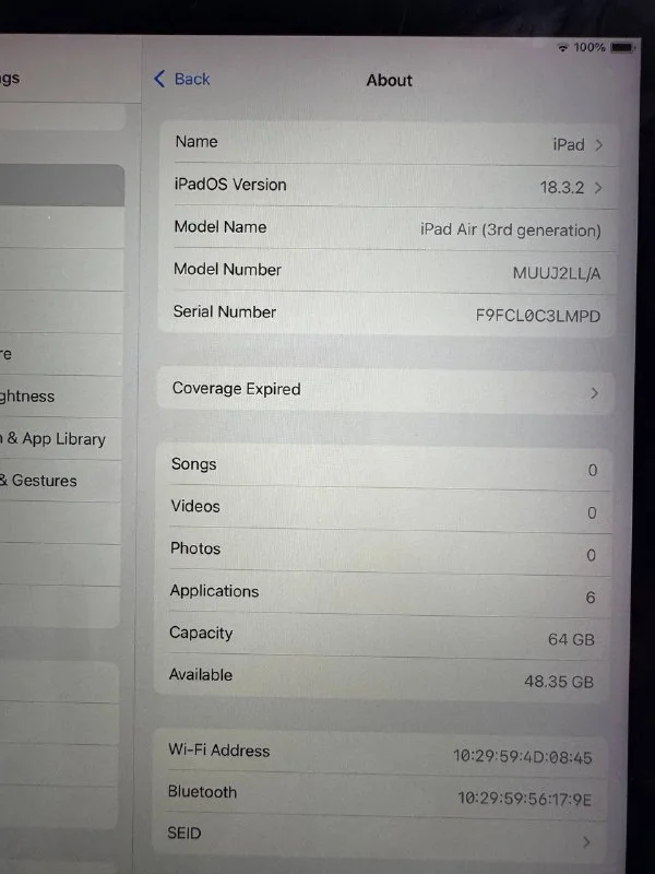 Apple Ipad Air 3rd generation, Space Gray