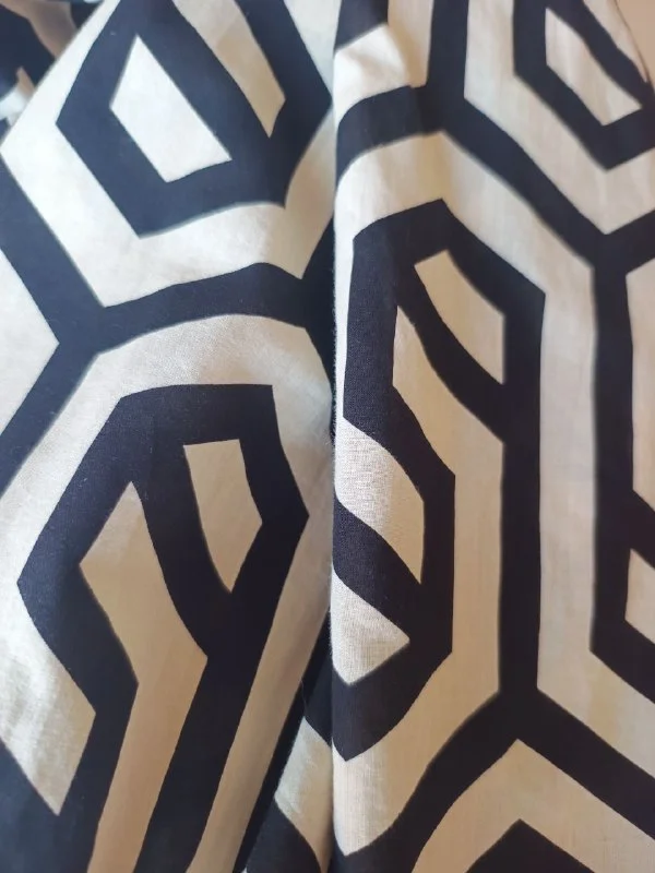 💯%хлопок, слегка прозрачная, бежевая с черной геометрией, смотрится 🔥, очень стильная