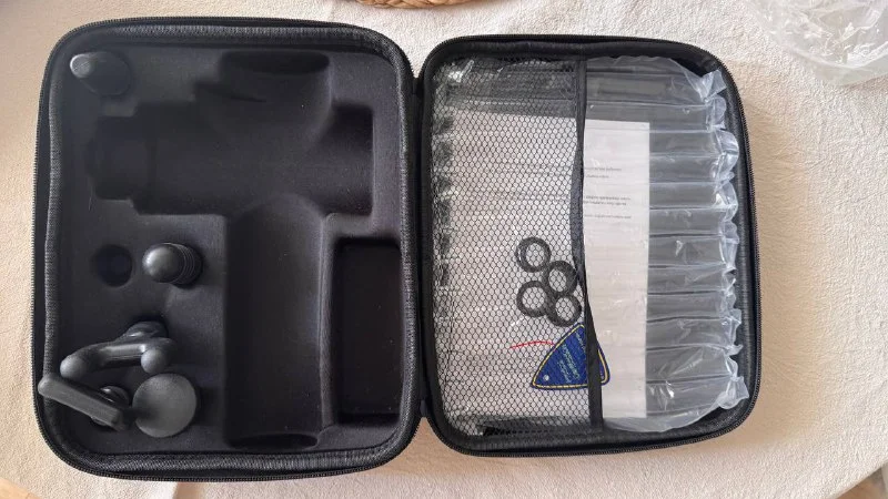 Перкуссионный массажер, в хорошем состоянии, с разными видами насадок и кейсом, 10€