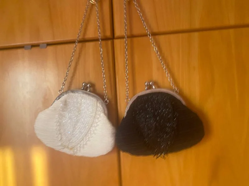 На завязках с деревянными бусинами.