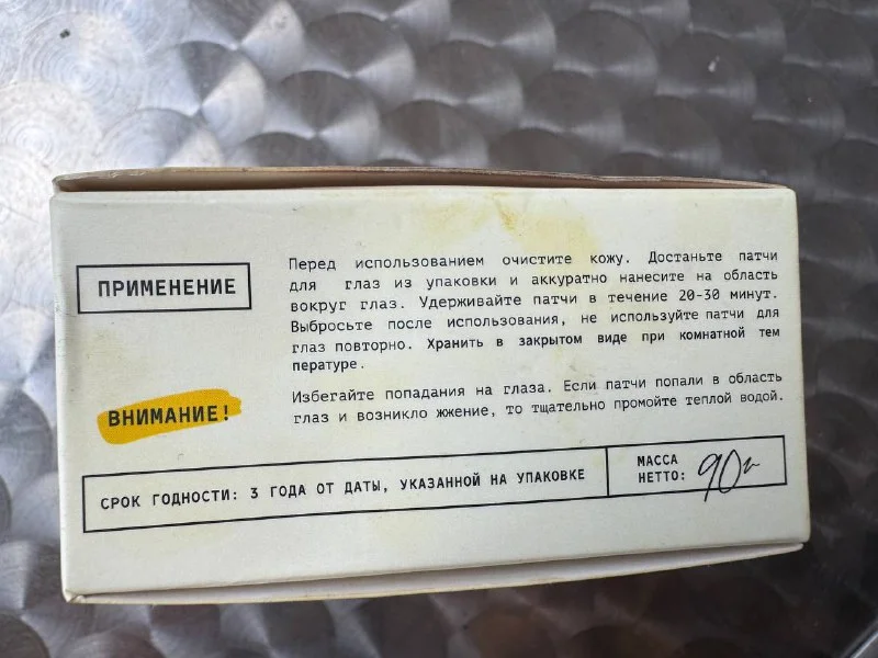 Гидрогелевые патчи с экстрактом прополиса, хранятся в холодильнике 60 шт.в коробке без 2 шт.(на пробу) 25€
