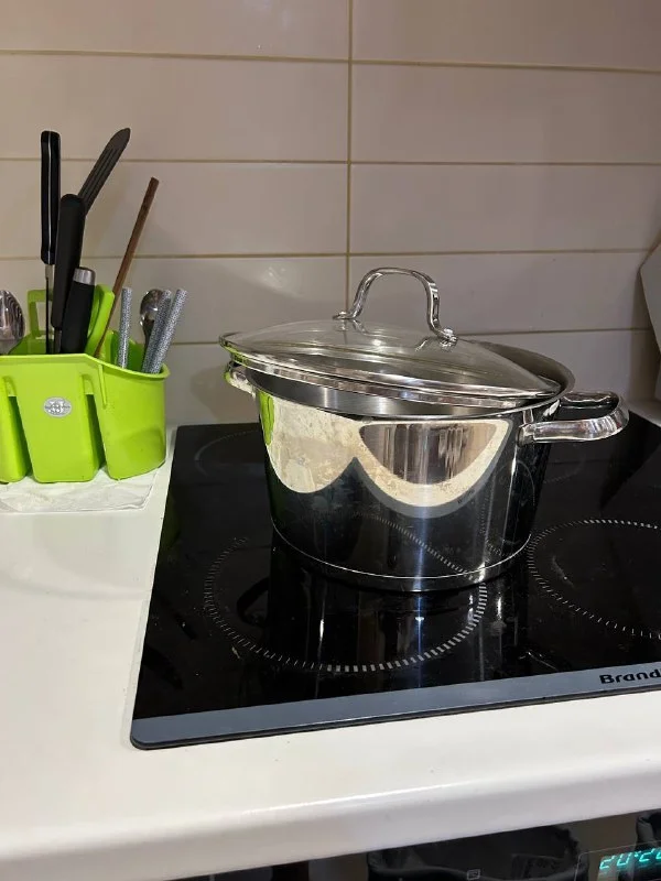 Большая кастрюля из нержавейки, на 4,5 л., внутри шкала с отметками, в отличном состоянии. 20 евро (покупали в Альфа-Меге за 40). Лимассол