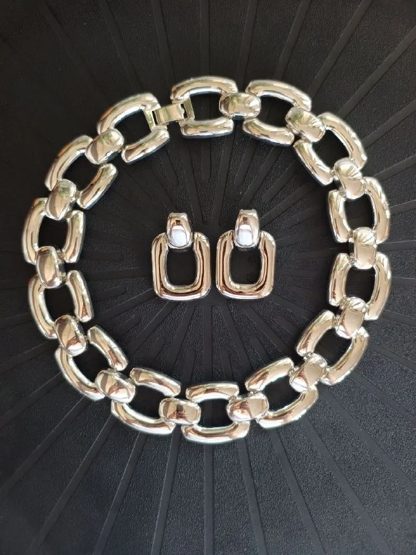 Абсолютно новый стильный комплект бижу. Чокер и серьги-гвоздики. Цвет серебряный. Лимассол. 35 евро.