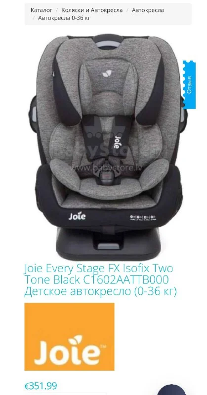 Продаю многоступенчатое автокресло Joie Every Stage FX, модель C1602 (0–36 кг / до 12 лет).
