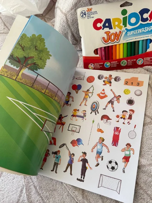Детский набор, краски, карандаши или фломастеры, альбом для рисования, разукрашка