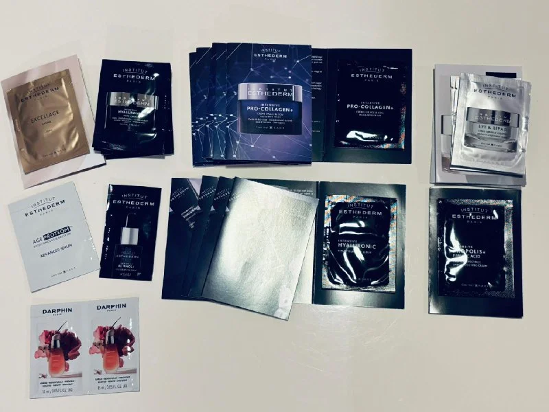 68€/Комплект пробников (все или по отдельности) франц.брендов Esthederm (гиалурон/коллаген: 5 smoothing крем, 6 для лица/шеи, 5 серумов для глаз, 5 гиалурон.крем, 1 perfecting крем, 1 ретинол, 1 увлажняющ, 1 серум для лица), Darphin (2 обновляющих серума) , Ahava (крем от морщин, Израиль), La Roche-Posey крем. Кремы 2,5€ (5 мл), серум для глаз 3€ (2 мл), серумы для лица 1€ (1 мл). Лимасол, зона вдоль моря.