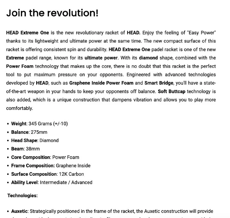 2. Для продвинутых игроков Head Extreme One Padel Racket - 165 евро