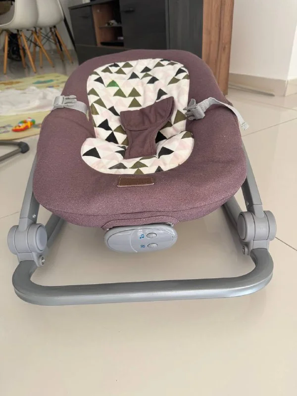 Шезлонг с режимами вибрации, звуками птиц и детскими мелодиями. Разные положения (лёжа, полусидя, сидя)