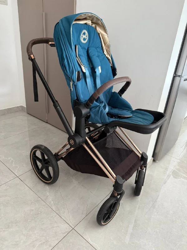 Продам коляску Cybex Priam 4 с золотом, весь комплект: люлька, сит пэк и автокресло со вкладкой для новорожденных. Цвет mountain blue, люлькаи сит пэк с золотыми вставками. В идеальном состоянии, все после чистки. Из дефектов только чуть кожа на ручке отошла, на эксплуатацию не влияет